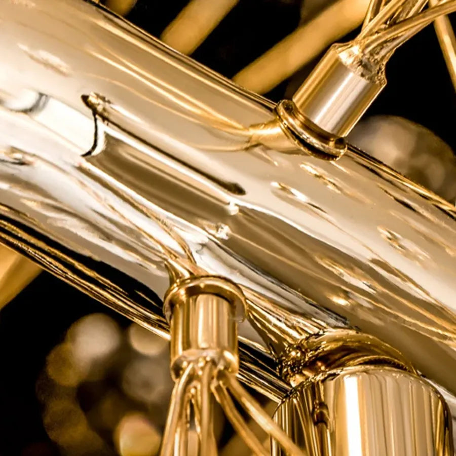 - Finisaj Auriu Lucios: Culoarea auriu lucios a structurii metalice intensifică senzația de căldură și opulență, complementând strălucirea bogată a cristalelor.