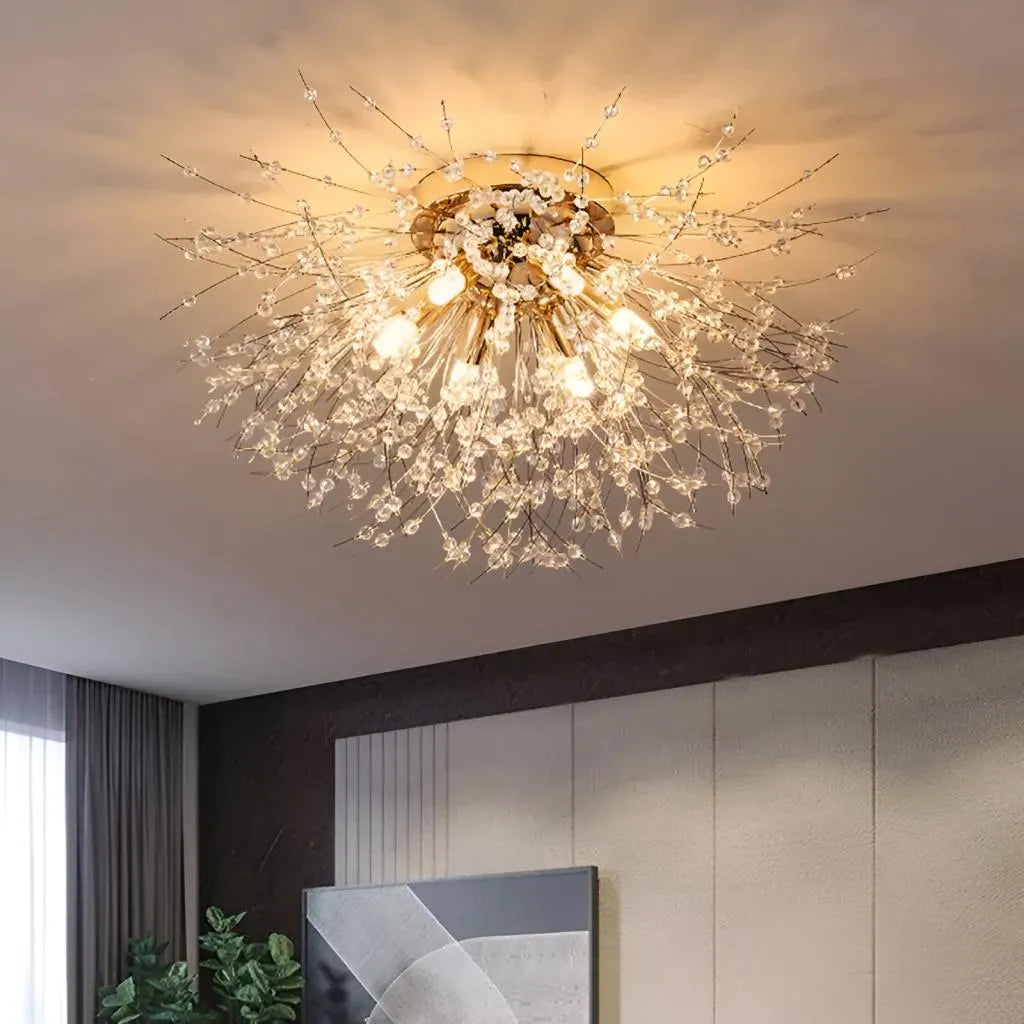 - Iluminare Strălucitoare: Cele 6 becuri G9, combinate cu proprietățile refractive ale cristalelor, asigură o iluminare ambientală bogată și o atmosferă luminoasă.