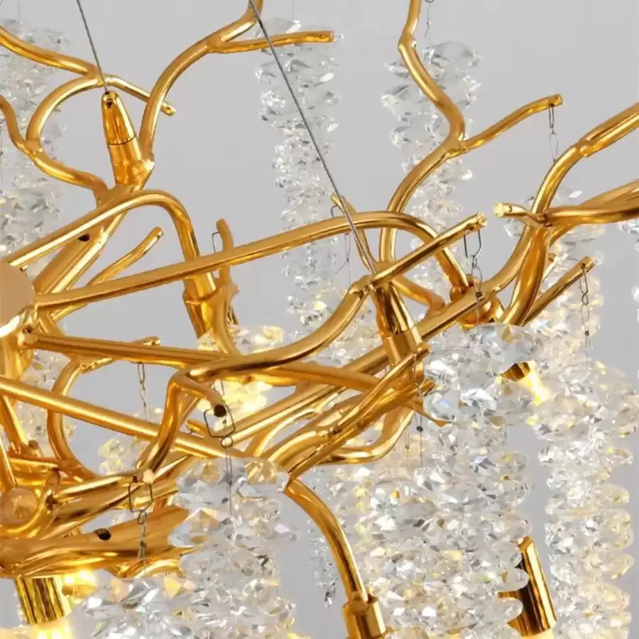 Candelabrul Cristal Stephen este o piesă de iluminat spectaculoasă care îmbină cu măiestrie eleganța aurie cu strălucirea cristalelor. Cu un diametru impunător de 60 de centimetri, acest candelabru adaugă instantaneu o notă de lux și rafinament în orice încăpere. Cu 8 dulii tip G9, Candelabrul Stephen vă oferă posibilitatea de a alege becurile care se potrivesc cel mai bine cu stilul și atmosfera dvs. interioară. Designul său unic include cristale distribuite în siraguri tip strugure, care atrag privirea și reflectă lumină într-un mod sublim.