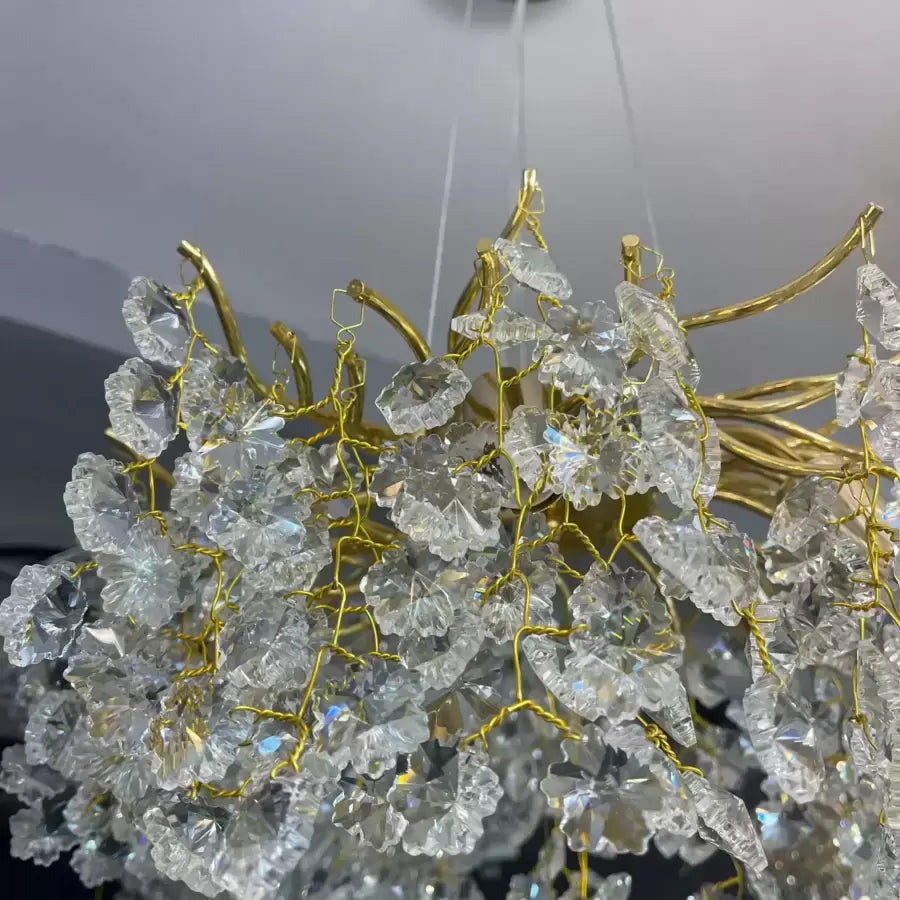 Montajul și instalarea sunt ușoare, iar construcția sa robustă garantează că veți bucura mult timp de frumusețea și strălucirea acestui candelabru excepțional. Cu Candelabrul Cristal Sutton, veți adăuga strălucire aurie și o notă de delicatețe florală în locuința sau spațiul dvs. comercial.