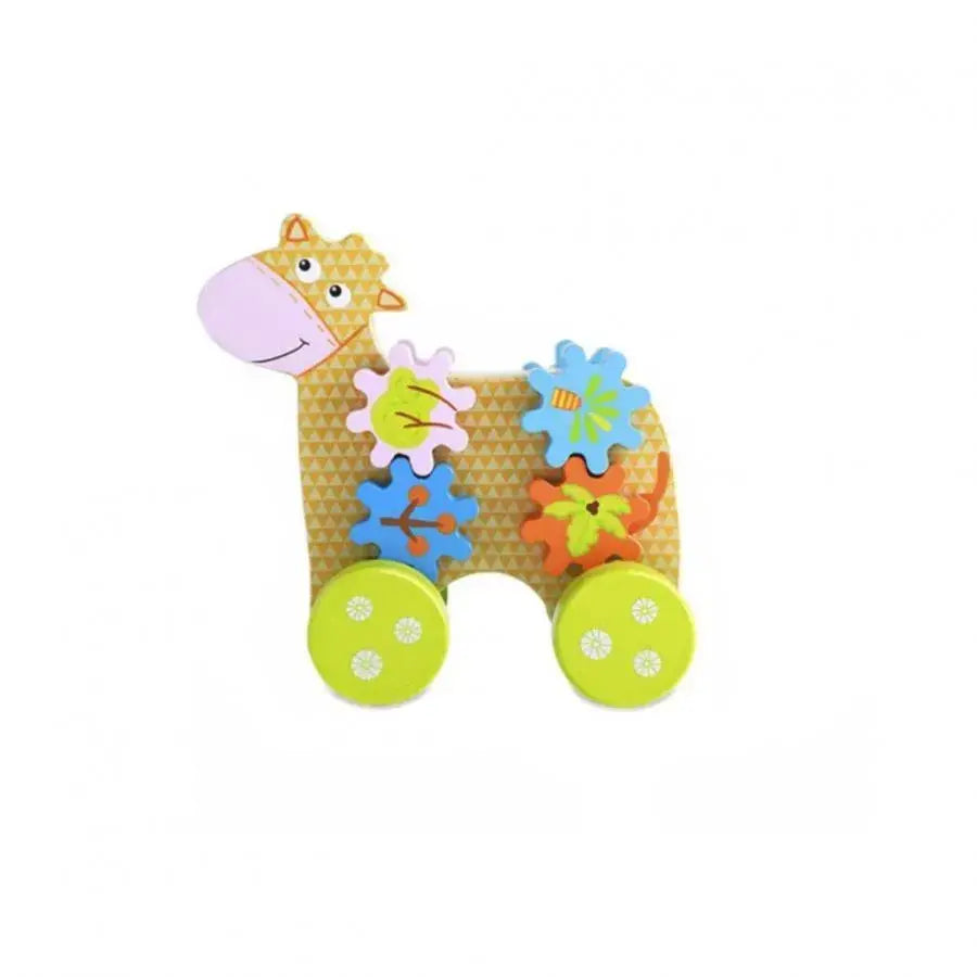 Jucarie Cognitiva Multicolor din Lemn in Forma de Vacuta