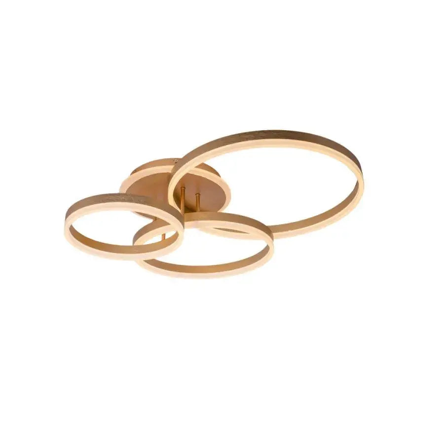 Lustra LED cu Telecomanda LYRA, 100W, 3 Cercuri, Dimabila, Auriu Periat, Lumina Rece/Calda/Neutra