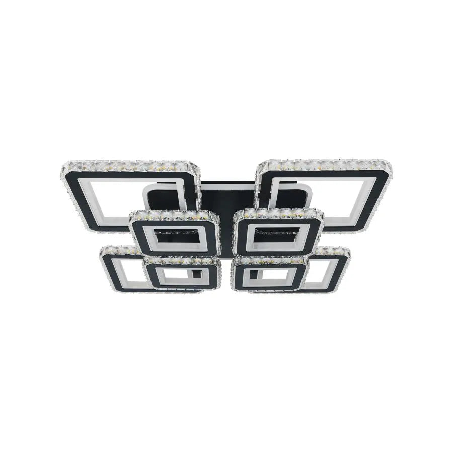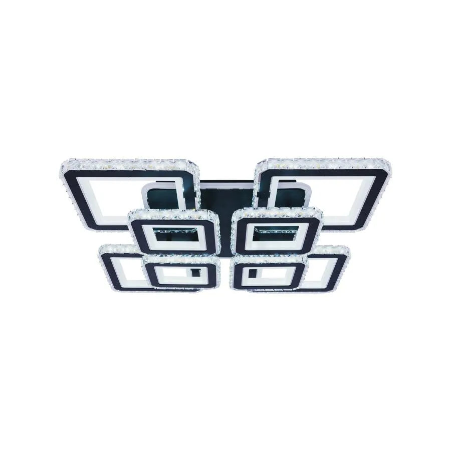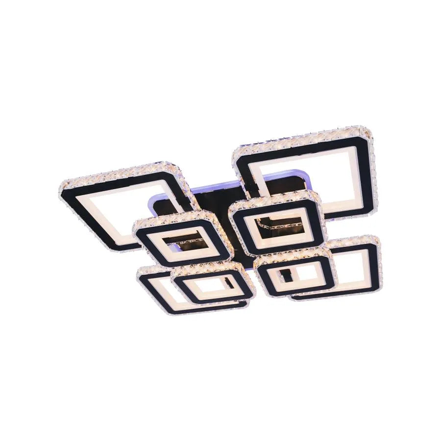 Lustra LED cu telecomandă și cristale LEILA RGB este o piesă de iluminat spectaculoasă și modernă, cu un design îndrăzneț format din 8 pătrate elegante, finisate în negru. Cu o putere impresionantă de 236W, această lustră oferă o iluminare puternică și extrem de versatilă, datorită funcției RGB care adaugă o paletă largă de culori ambientale.