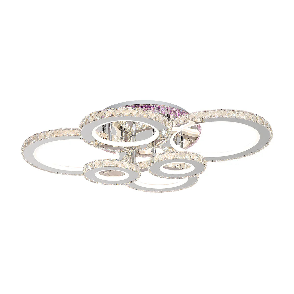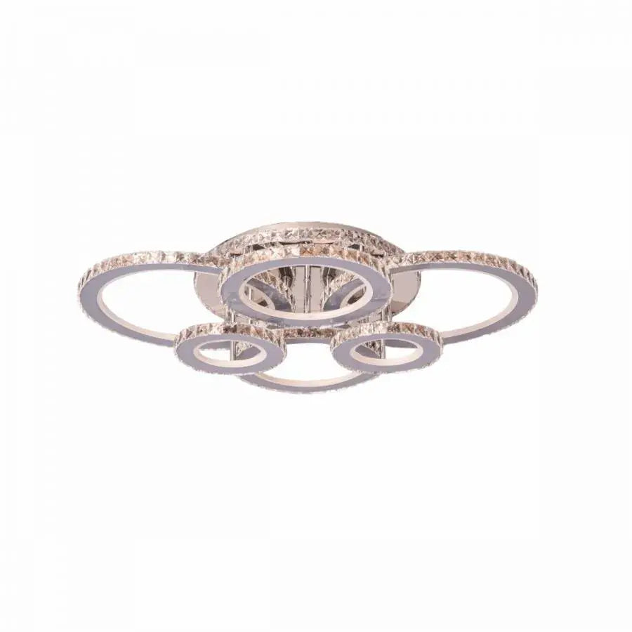 Lustra LED cu telecomanda si cristal NOVA ROTONDA RGB, 152W, 6 Cercuri, lumina Rece/Calda/Neutra, Dimabila, Crom Lucios