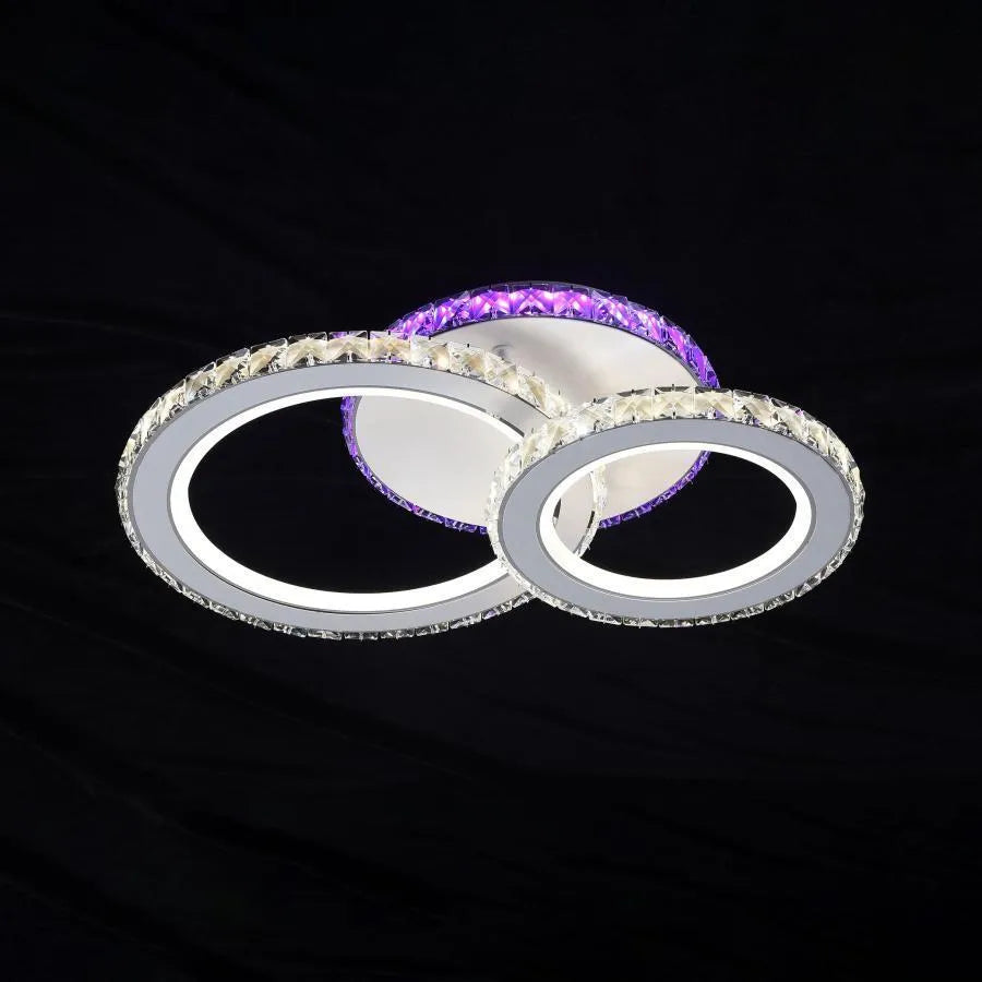 Lustra LED cu telecomanda si cristal NOVA ROTONDA RGB, 43W, 2 Cercuri, lumina Rece/Calda/Neutra, Dimabila, Alb