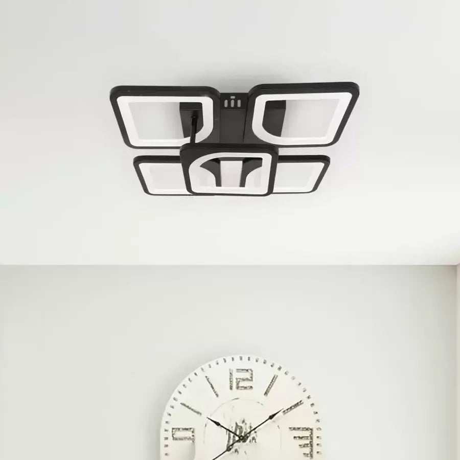 Lustra LED cu telecomanda ZOE 5 Patrate, 68W, Lumina Rece/Calda/Neutra, Dimabila, Negru
