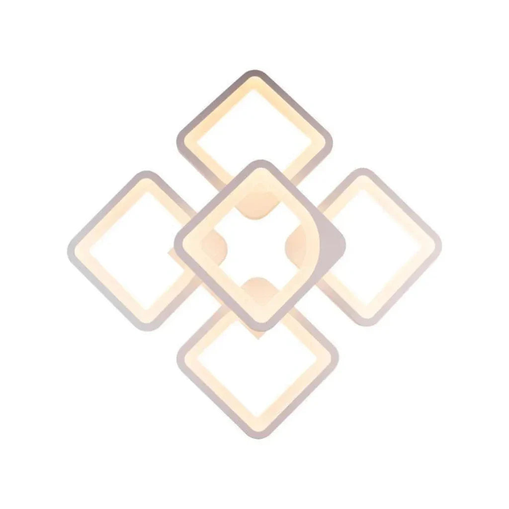 Forma geometrica, alcatuita din cinci elemente patrate cu benzi LED integrate, ofera un aspect modern si echilibrat. Finisajul alb contribuie la un design minimalist, usor de integrat in orice decor interior.