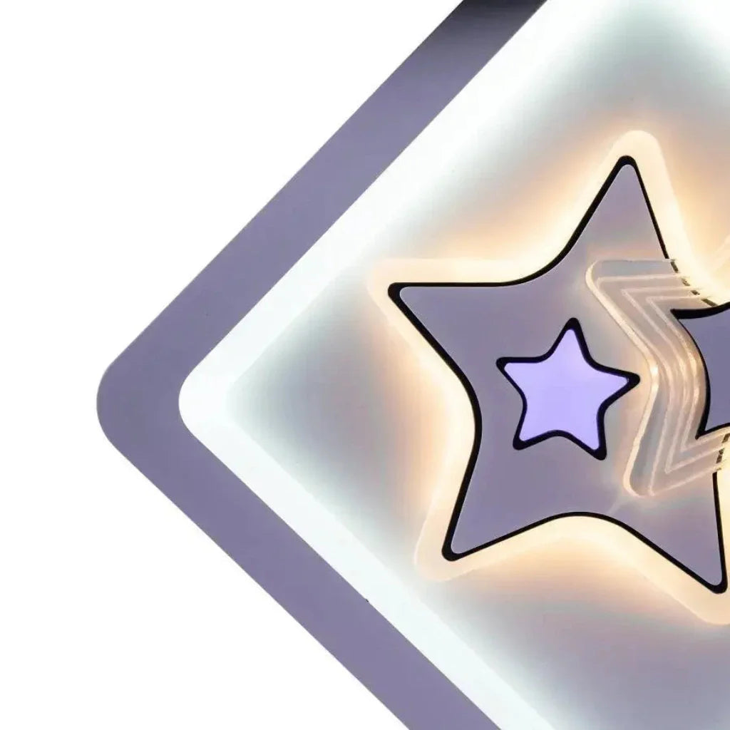 Descopera farmecul unei lustre moderne care aduce magie in camera copilului tau. Cu un design patrat elegant in nuante de alb si elemente decorative in forma de stele, aceasta lustra LED se integreaza perfect in universul celor mici, creand o atmosfera speciala si primitoare.