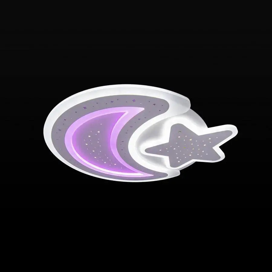 Lustra LED Luna si Stea RGB cu telecomanda Coralia 80W Lumina Rece/Calda/Neutra Dimabila Alb