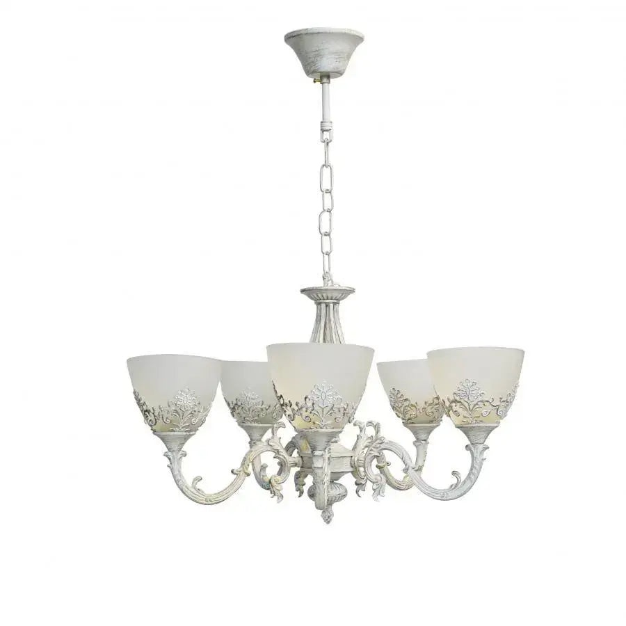 Lustra Rustic COTTAGE, 5*E27, Alb, Metal si Sticla
