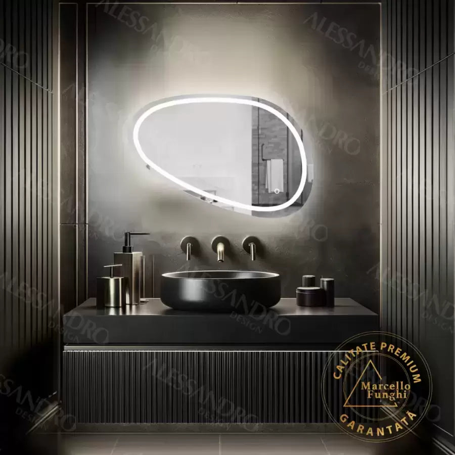 Oglinda LED Touch Disegno, parte a Colectiei Marcello Funghi, este o alegere excelentă pentru cei care doresc să adauge un element unic și modern în decorul băii, dressingului sau dormitorului lor. Cu un design inovator și forma neregulată, această oglindă de 80 cm lungime și 45 cm înălțime aduce un plus de stil și sofisticare, fiind ideală pentru spații moderne și contemporane.