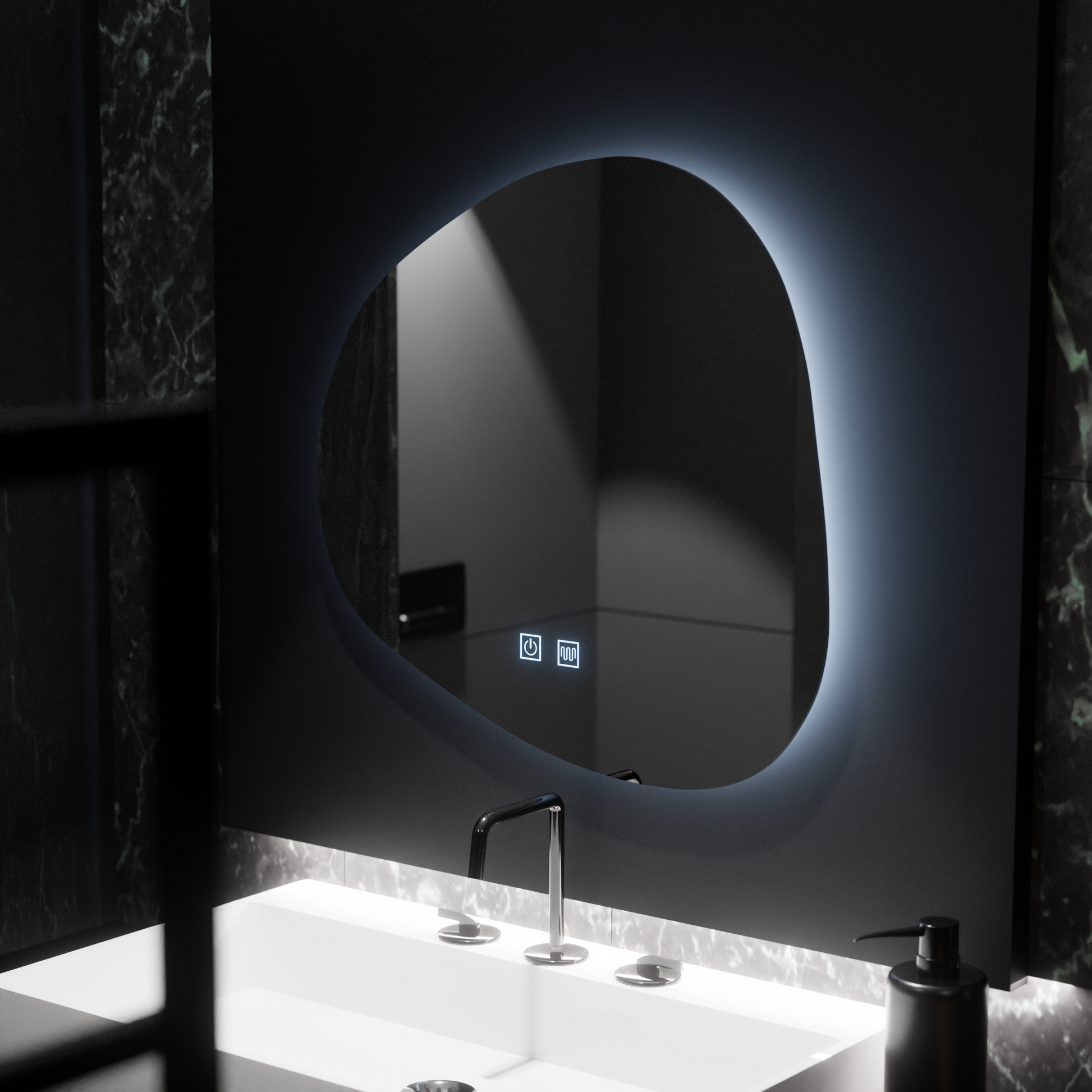 Oglinda LED Organică Duna Touch, cu dimensiunile de aproximativ 60x60 cm (forma organică poate varia ușor față de un pătrat perfect), aduce un element de design fluid și natural în spațiul tău. Spre deosebire de formele rectangulare sau rotunde tradiționale, conturul său neregulat și armonios adaugă un plus de originalitate și finețe.